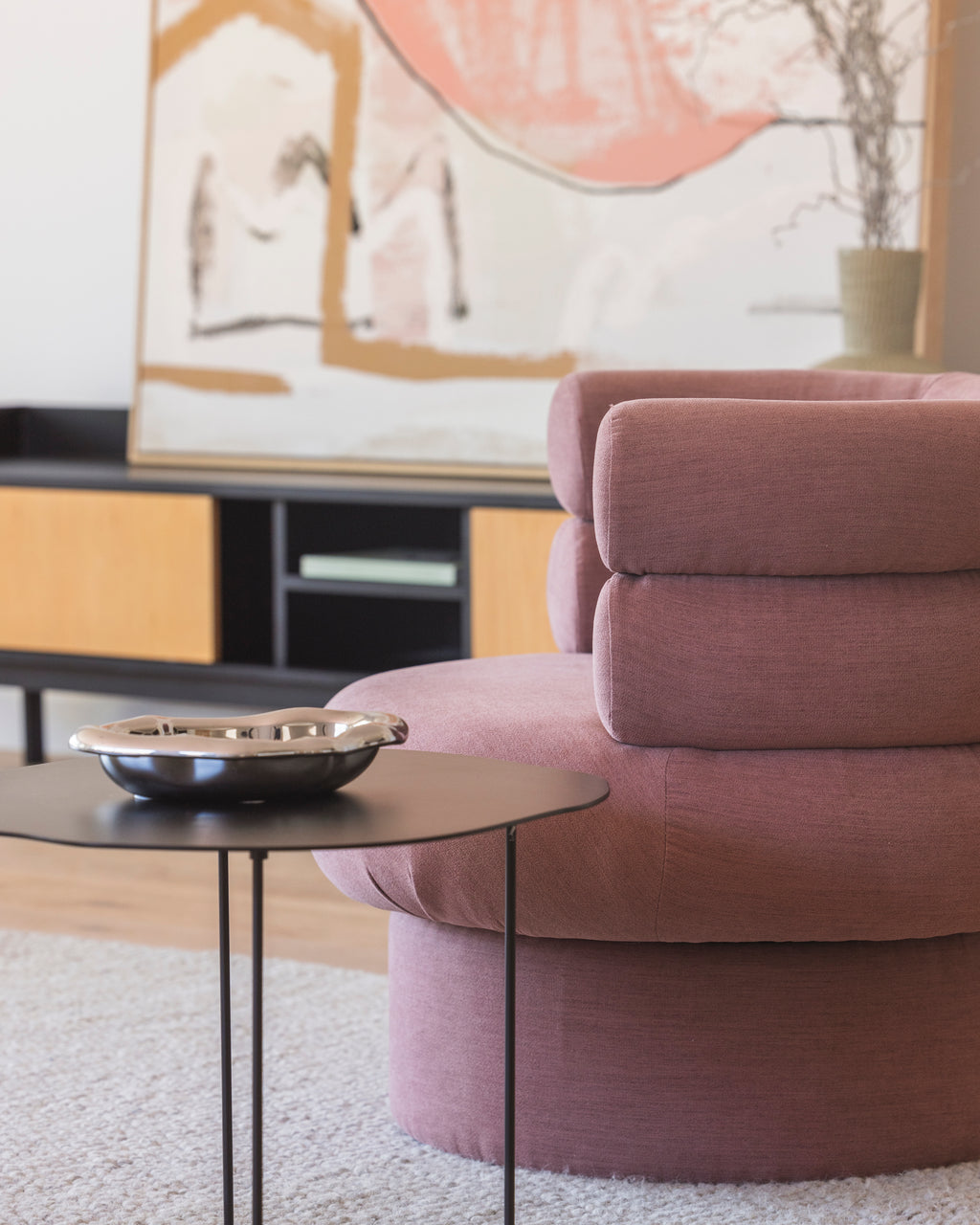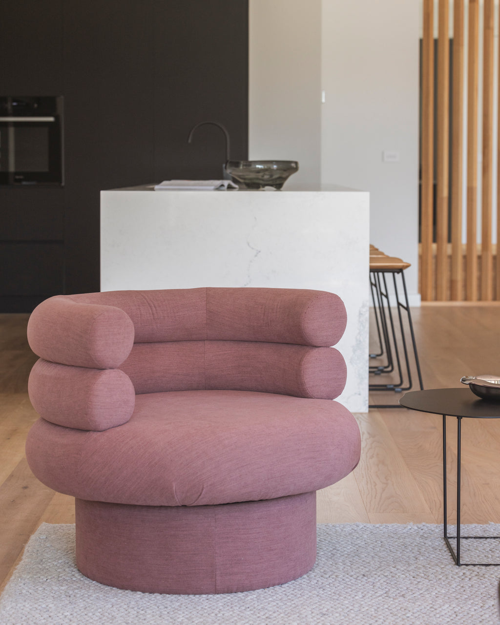 Designed to bring understated elegance to modern living, the Earl Occasional Chair in Blush balances bold geometry with a soft, inviting form. Its plush, rounded silhouette is perfect for adding a touch of sophistication to contemporary interiors. Whether styled as a statement piece or paired with complementary furnishings, the Earl exudes charm and effortless style.
