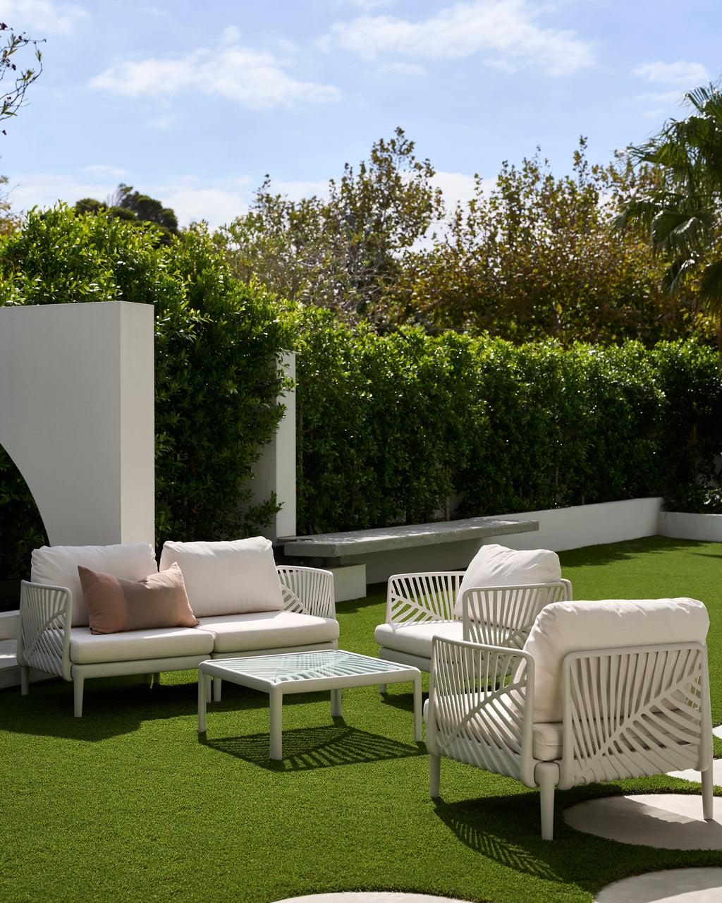 The Rio Lounge Set offers a ready-made solution for relaxed outdoor living. With its soft curves and open, lightweight frames, it’s designed to create a comfortable space that looks good from every angle.