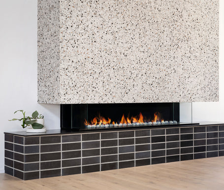 With its radiant warmth, the double-sided divides two rooms while keeping a refreshing open feel.