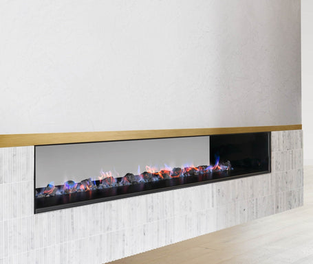 A defining feature of the Horizon range is the floating burner, hidden controls, and stylish slimline design. Plus, a high gas input which means more flame, more glow and inviting radiant heat.