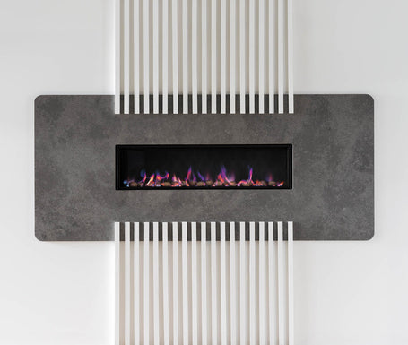A decorative slimline fire with a floating burner that produces beautiful radiant heat.