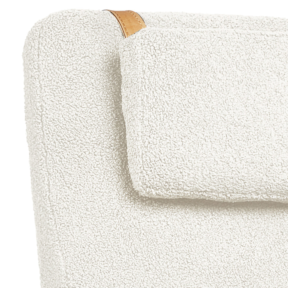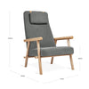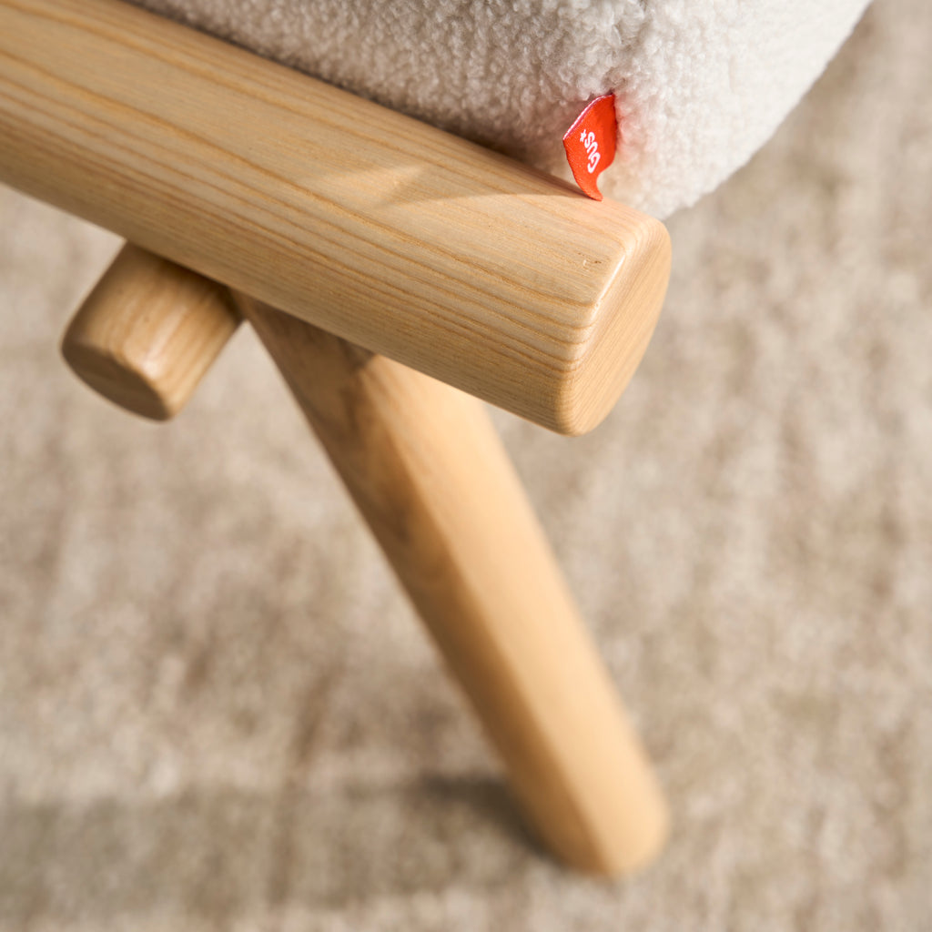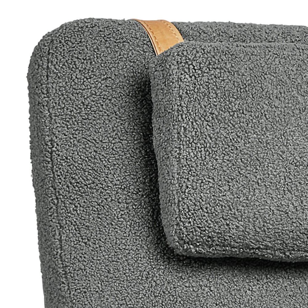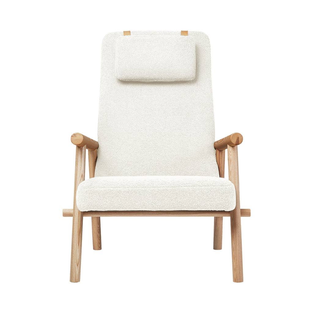 A rugged, eco‐friendly take on modernism, the Gus* Modern Labrador is a unique accent chair that invokes calm and lightness, with elements reduced to their essential forms. Its Scandinavian‐inspired look is achieved using natural materials like solid ash and hand‐stitched leather. Wood is FSC®‐ Certified to support responsible forest management, and faux‐wool coverings are made from 100% recycled plastic bottles, diverted from landfills and waterways, then repurposed into a plush upholstery material. The headrest can be adjusted using a clever leather and wood counterweight to achieve optimal lounging position.