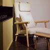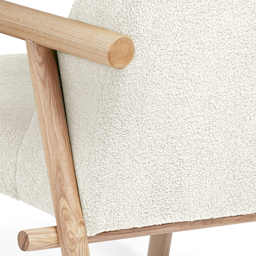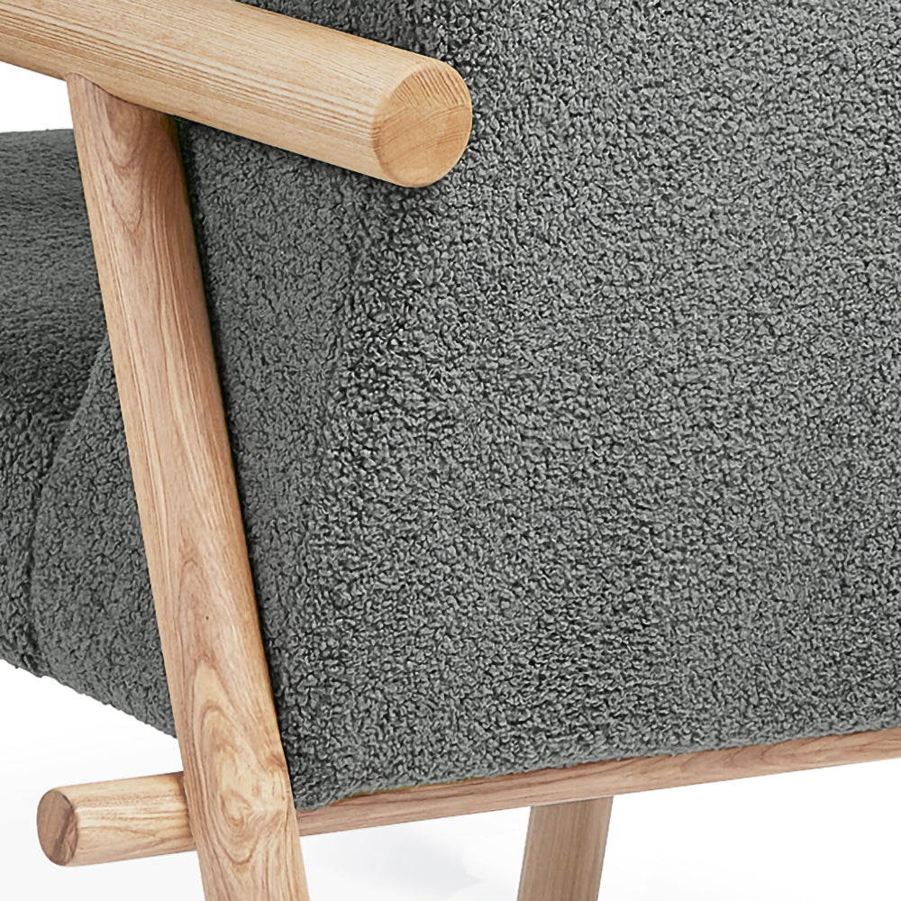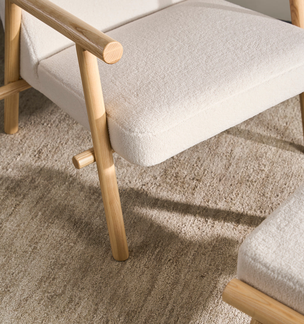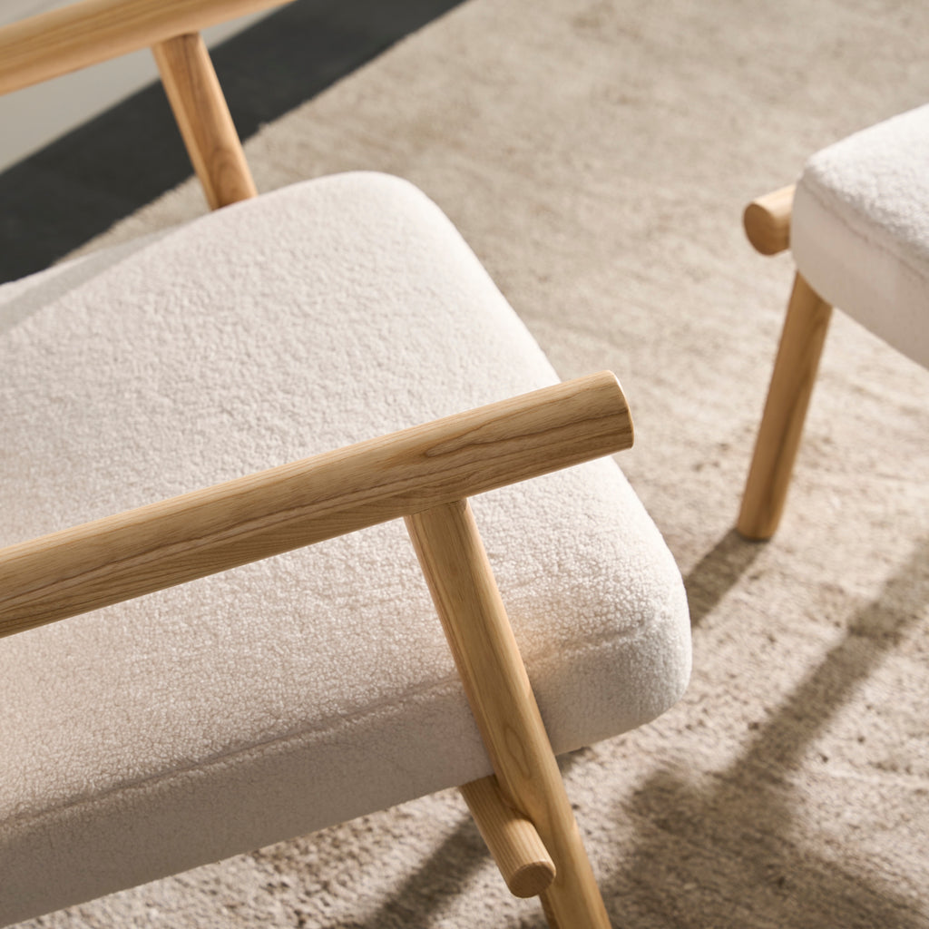 A rugged, eco‐friendly take on modernism, the Gus* Modern Labrador is a unique accent chair that invokes calm and lightness, with elements reduced to their essential forms. Its Scandinavian‐inspired look is achieved using natural materials like solid ash and hand‐stitched leather. Wood is FSC®‐ Certified to support responsible forest management, and faux‐wool coverings are made from 100% recycled plastic bottles, diverted from landfills and waterways, then repurposed into a plush upholstery material. The headrest can be adjusted using a clever leather and wood counterweight to achieve optimal lounging position.