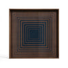 Organic movement meets linear shapes in the Linear Flow tray collection. This Ink Squares glass tray is inspired by the ink drawings at the beginning of the design process, when the pigment hits the glass it takes on a remarkable life of its own. Complementary effects are revealed in unexpected ways, where hand sketched and painted linear patterns generate a truly distinctive finish.