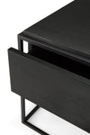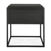 Made from black tainted solid oak with a varnish finish and a black metal frame.