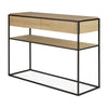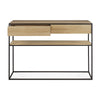 Made from solid oak with a hardwax oil finish and a black metal frame.