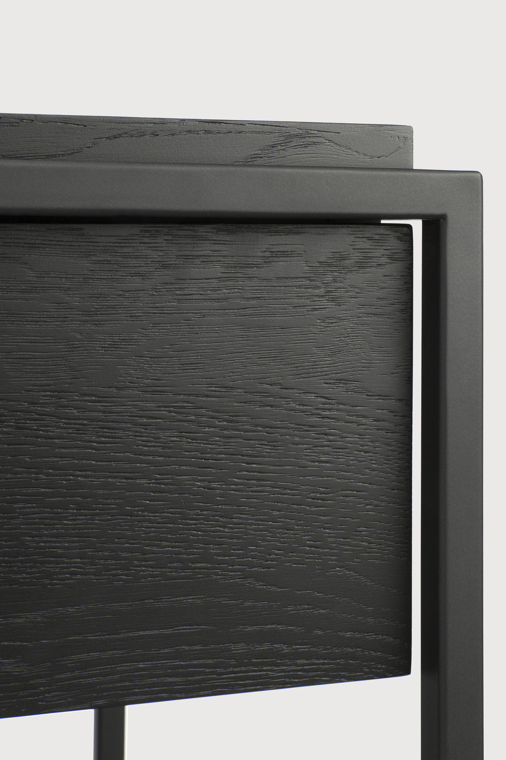Made from black tainted solid oak with a varnish finish and a black metal frame.