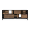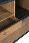 Features 2 sliding doors and 3 drawers. To enhance the natural material beauty, this teak product comes without any finishing or protective treatment applied.