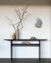 The PI collection honours nature's design, by keeping the strength, curves, and lines, as nature intended. Interesting shapes are discovered in this sleek and stylish, polished imperfect, finish. The PI console provides a balanced space to store cherished mementos.