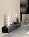 The Roller Max collection is remarkable in its design, distinguished with its stacked wood-stick effect. The TV cupboard offers functional storage in an eye-catching design, resulting in an elegant and sophisticated item for both residential and commercial spaces.