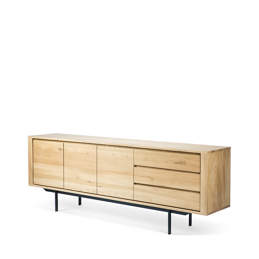 The Shadow collection is straightforward and robust with decisive lines. This more recent sideboard in solid oak with black metal legs, giving the design room to breathe, elevates this sideboard to new heights.