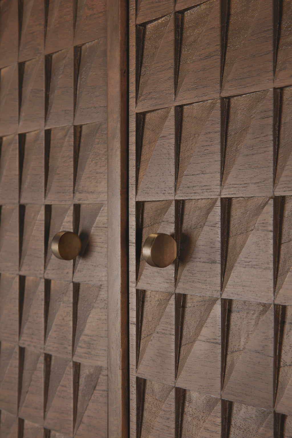 Sono, where antique-inspired craftsmanship meets modern elegance. This refined statement collection features hand-carved panels, offering functional storage behind classic beauty. Delicate casted brass handles elevate its look, making for a stunning addition to a room. It's the perfect blend of style and practicality, providing ample storage while enhancing your decor with its special detailing.