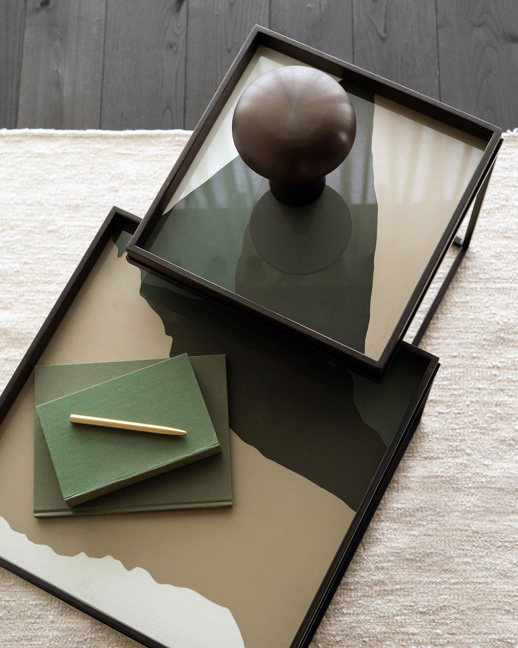 The square tray table is one of our most versatile pieces: while it serves its function as a coffee table, its ability to adopt different trays allows you to mix or match various colors and patterns, creating a personal piece that is uniquely yours. And of course, a set equals twice the fun and creativity.