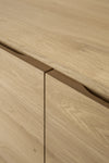 The subtle contours of the cabinet doors and the distinguished shape of the feet are what make the Wave collection so special. Made of solid wood, this TV cupboard's doors and drawers have no handles and feature a soft closing mechanism.