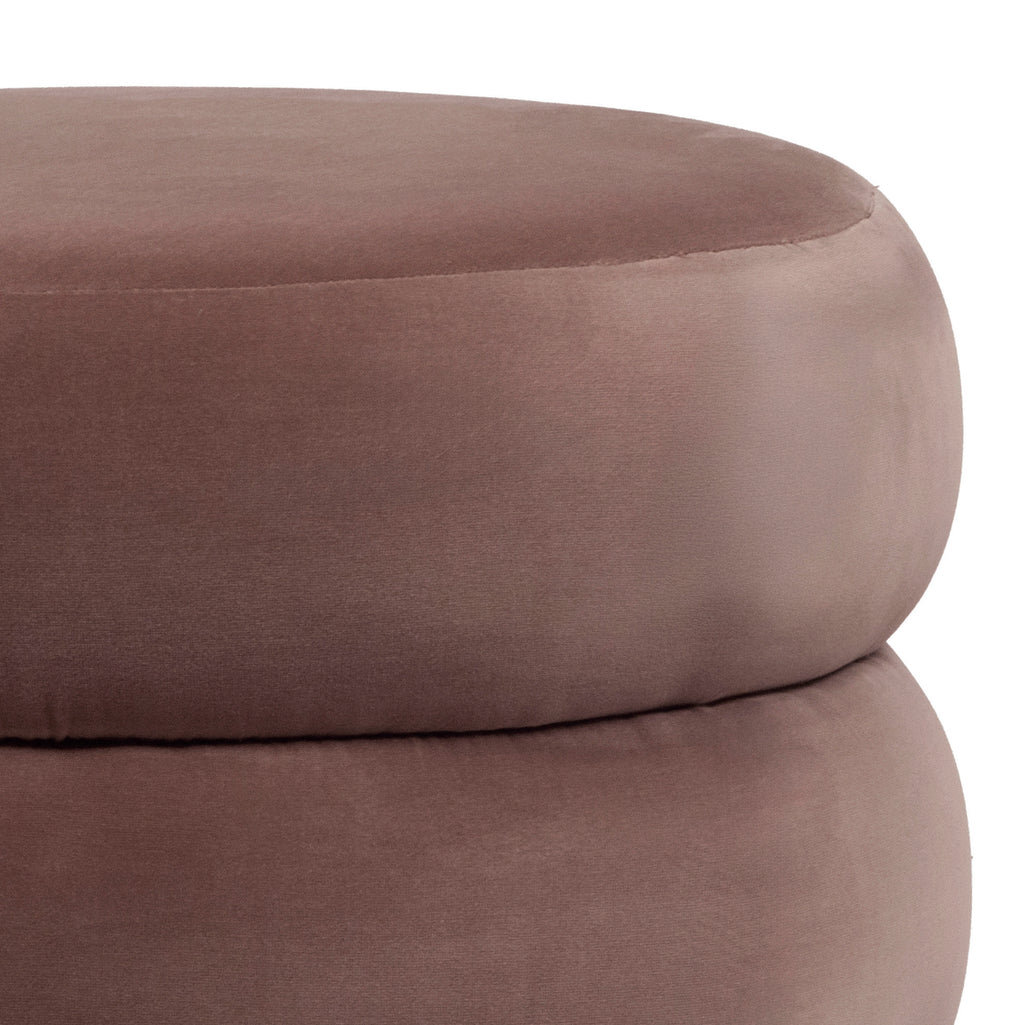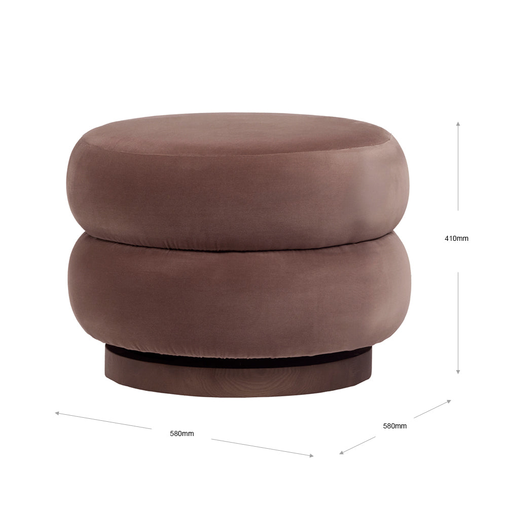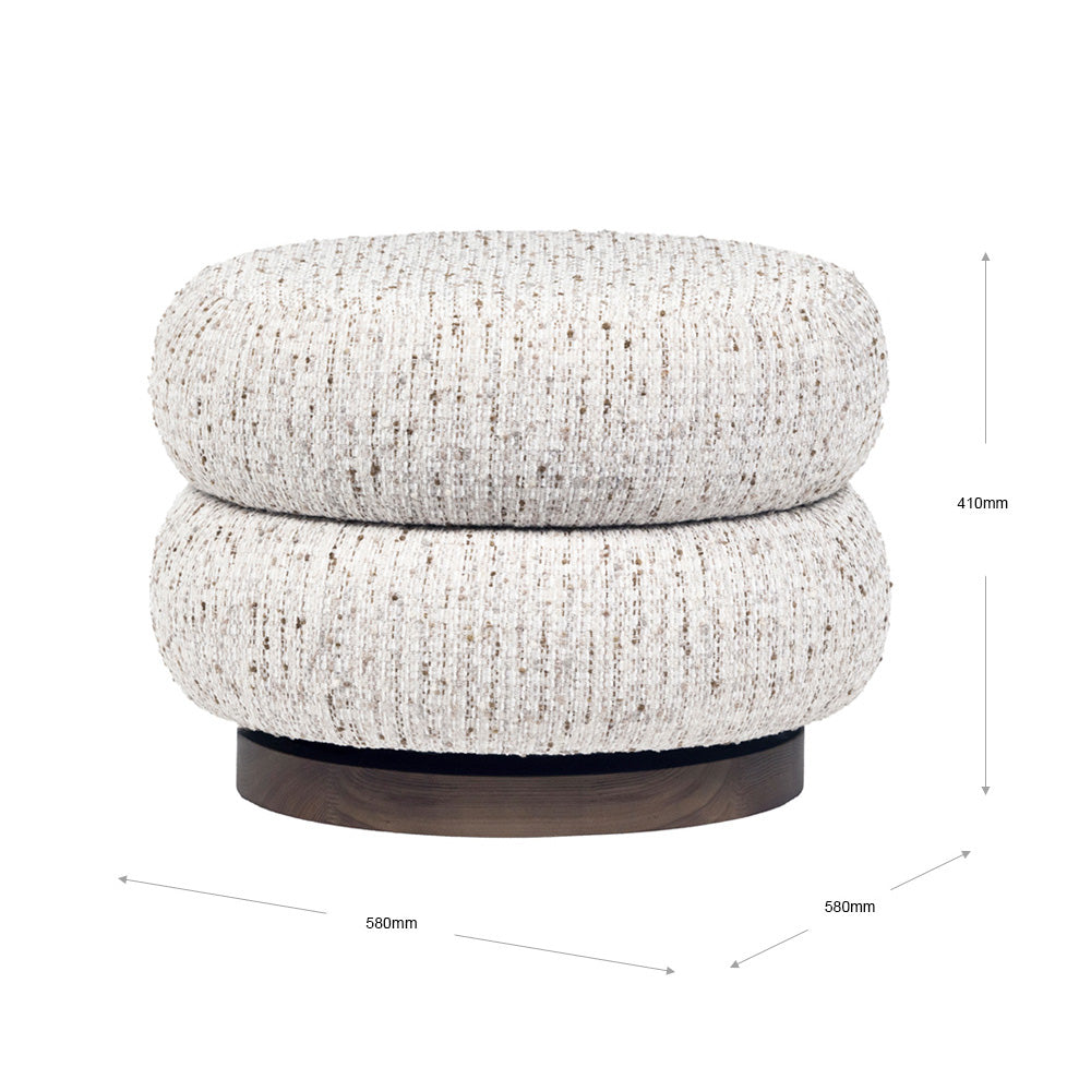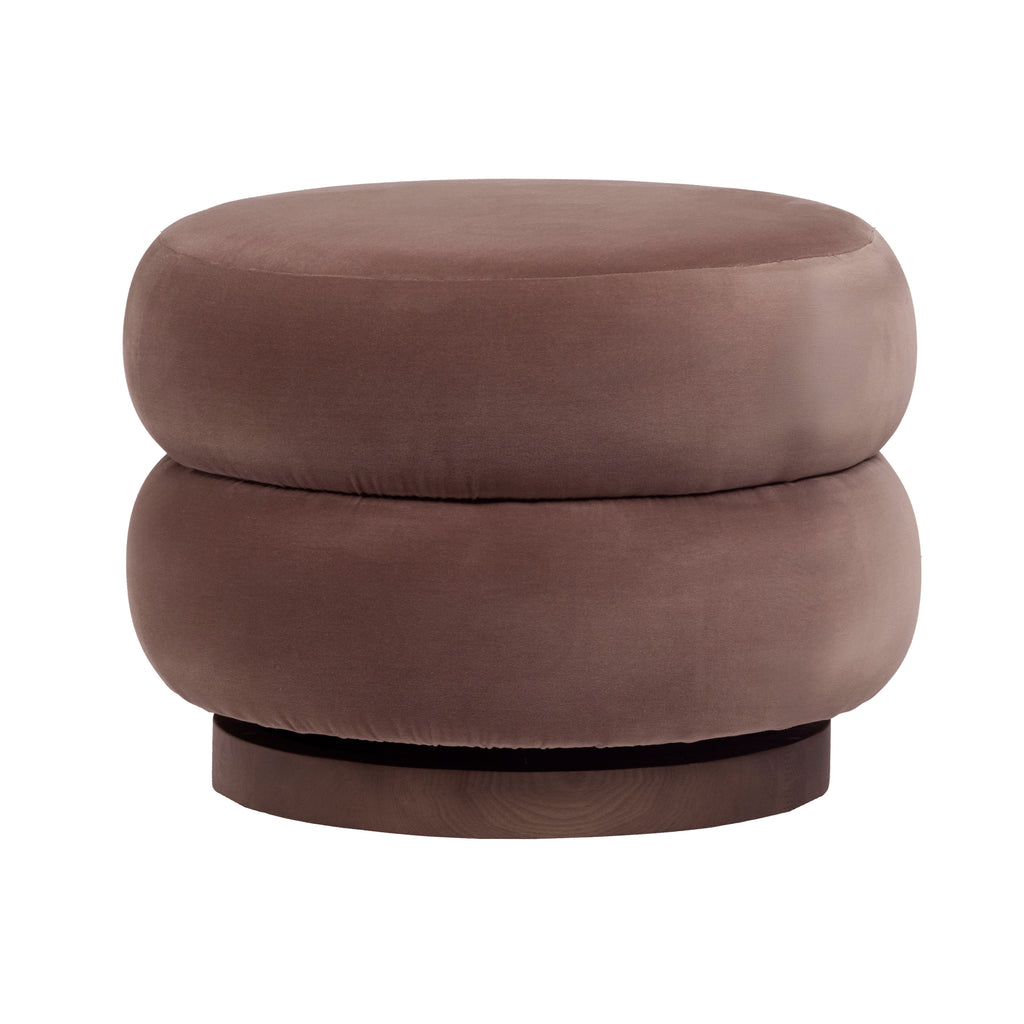 The Jude Ottoman blends soft, rounded forms with a rich, textured fabric for a refined yet inviting look. Its stacked silhouette adds visual interest, while the warm tones bring depth and character to any space. Anchored by a sturdy wood base, this ottoman serves as a functional accent. Perfect as a footrest, extra seating, or a sculptural statement piece.