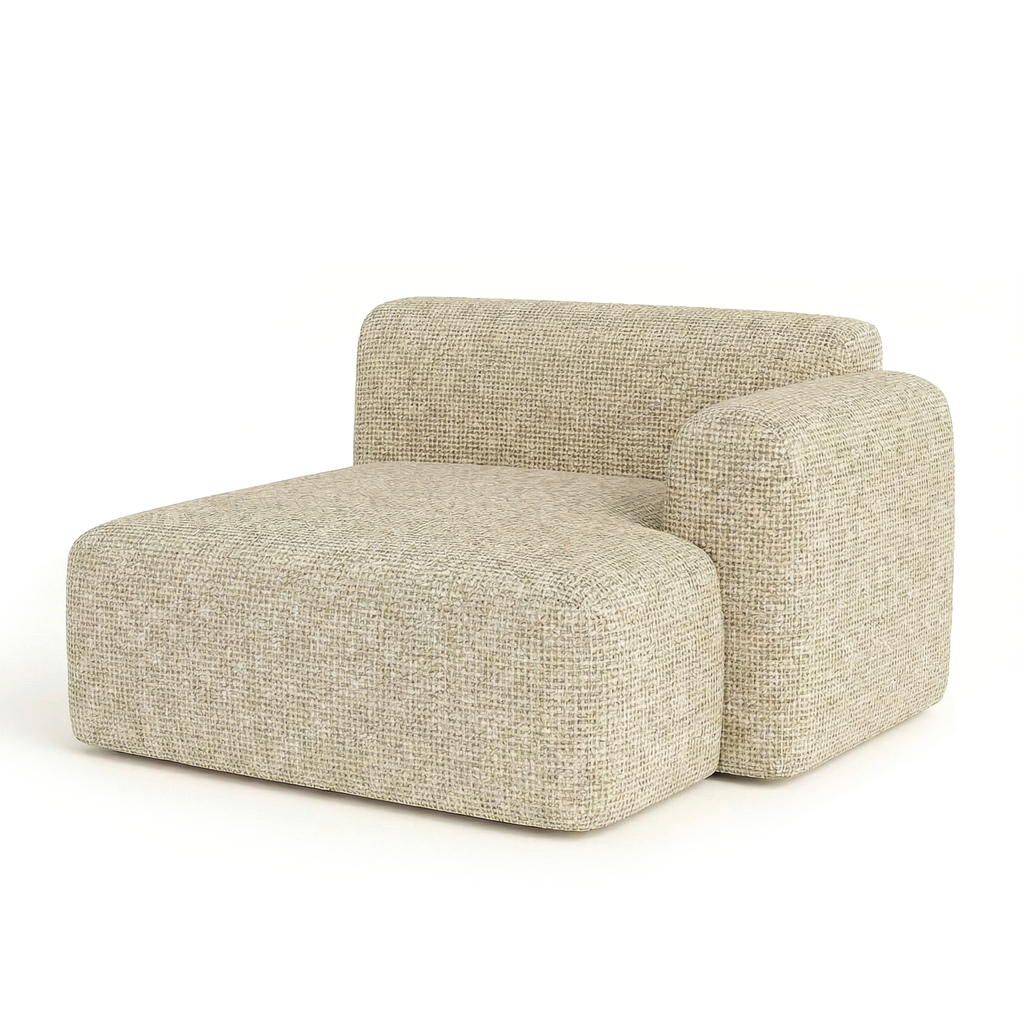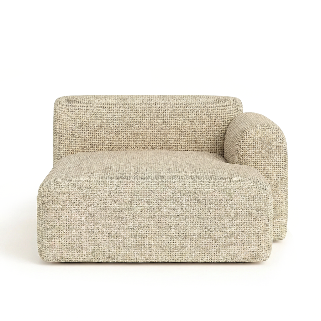 Designed with a right-facing orientation, this chaise allows the configuration to extend to the left, creating a relaxed, lounge-led arrangement that feels cohesive and considered.