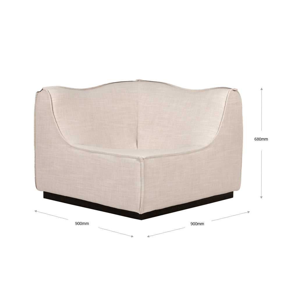 Designed with versatility in mind, the Cora Right Corner Sofa offers a refined balance of comfort and modern style. Upholstered in a soft, neutral shades, this piece anchors your modular configuration with its sculptural corner silhouette. Perfect for creating tailored seating arrangements or as a standalone corner piece, it seamlessly integrates into any living space with understated adaptability.