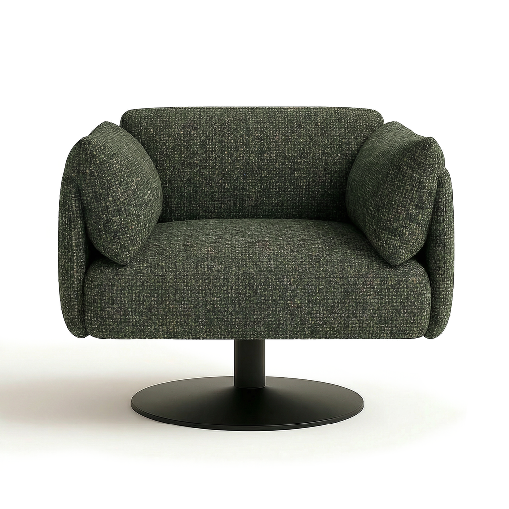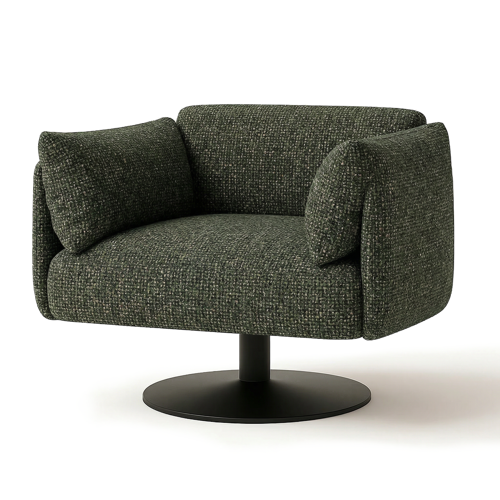 Its inviting proportions and rounded profile create a relaxed seating option that feels balanced, considered, and easy to live with.
