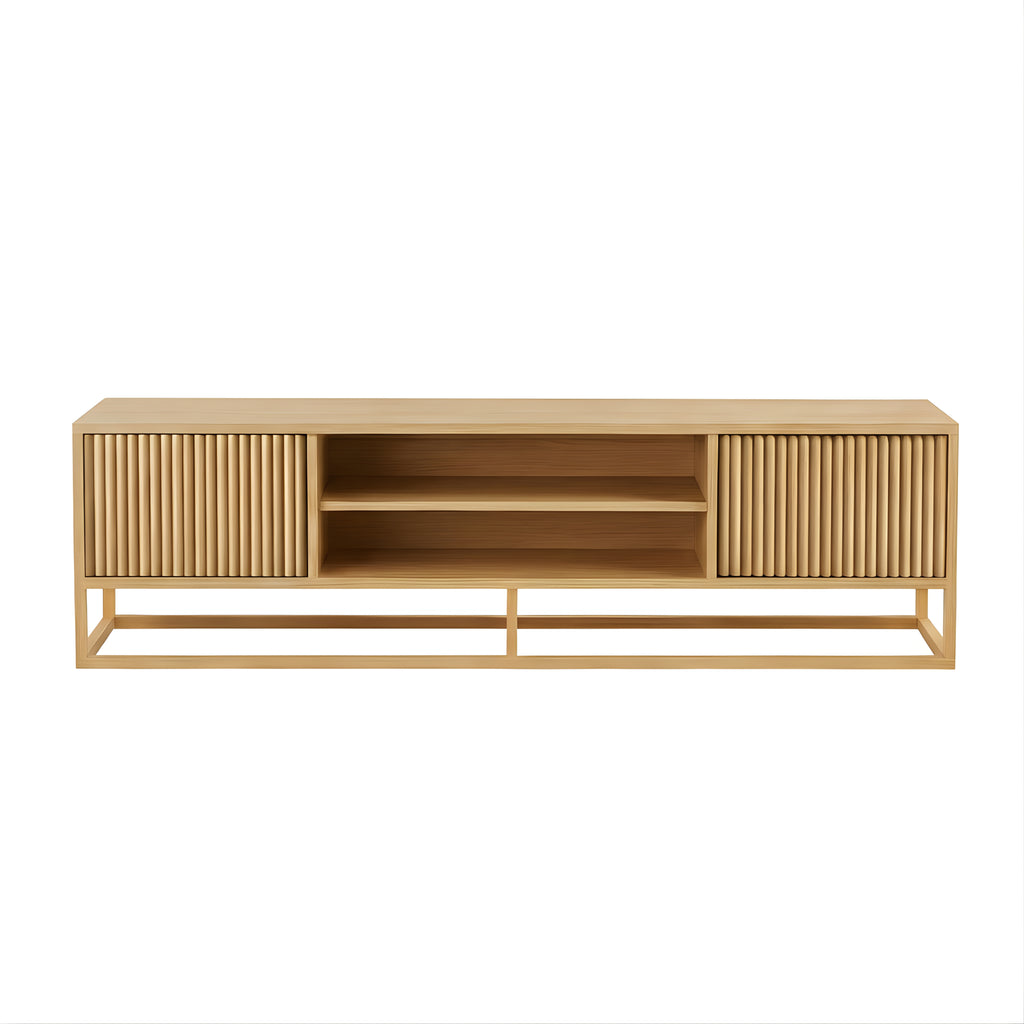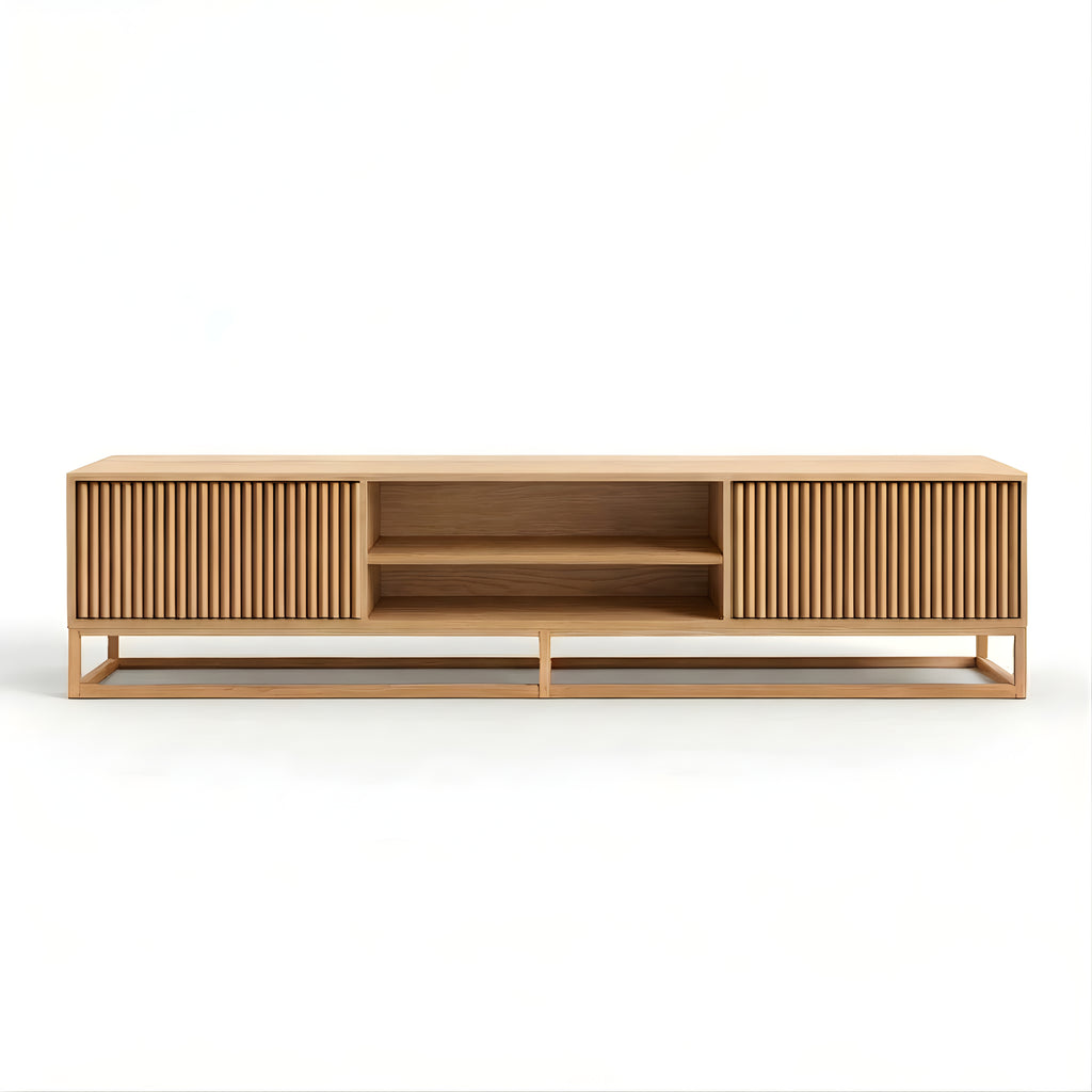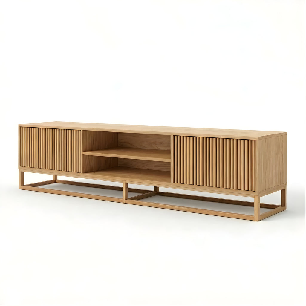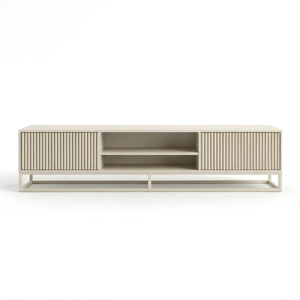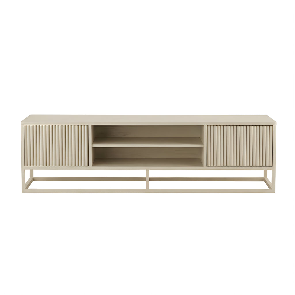 The Piper Square Entertainment Unit blends clean lines with thoughtful detail. Featuring fluted sliding doors and open central shelving, it offers a balanced mix of concealed storage and accessible display. Available in two sizes to suit a range of living spaces, its elevated frame keeps the profile light, while the fluting introduces rhythm and texture. Whether styled in a compact nook or anchoring a larger living zone, Piper brings a refined, architectural calm to the everyday.