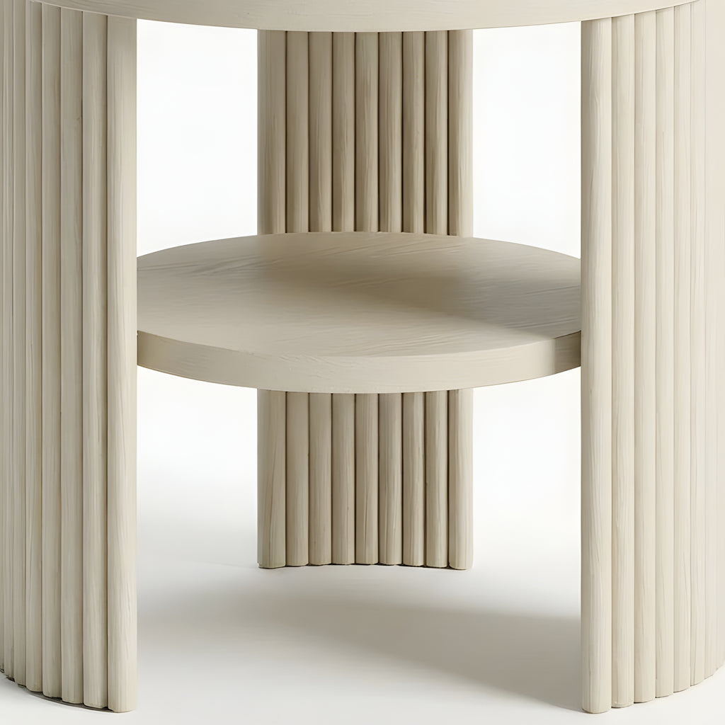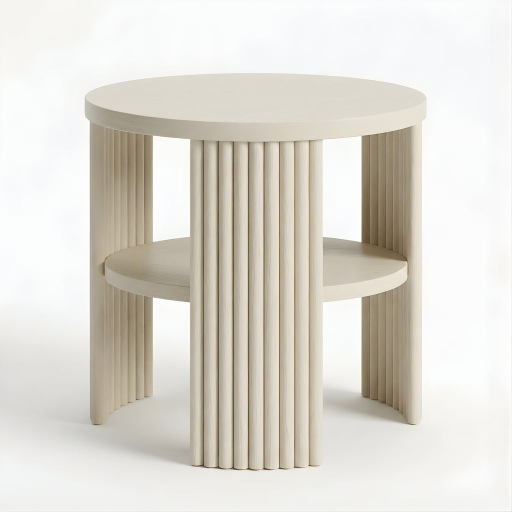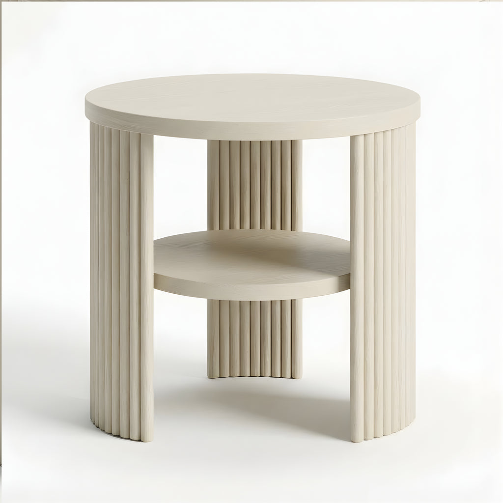 The Piper Triple Side Table is defined by balance, texture, and proportion. Its circular top is supported by three fluted semi-cylindrical legs, creating a sculptural rhythm from every angle. A recessed lower shelf adds function without visual weight, making this piece a refined companion for the sofa, bedside, or reading corner. Compact yet expressive, it’s a versatile layer in any modern setting.