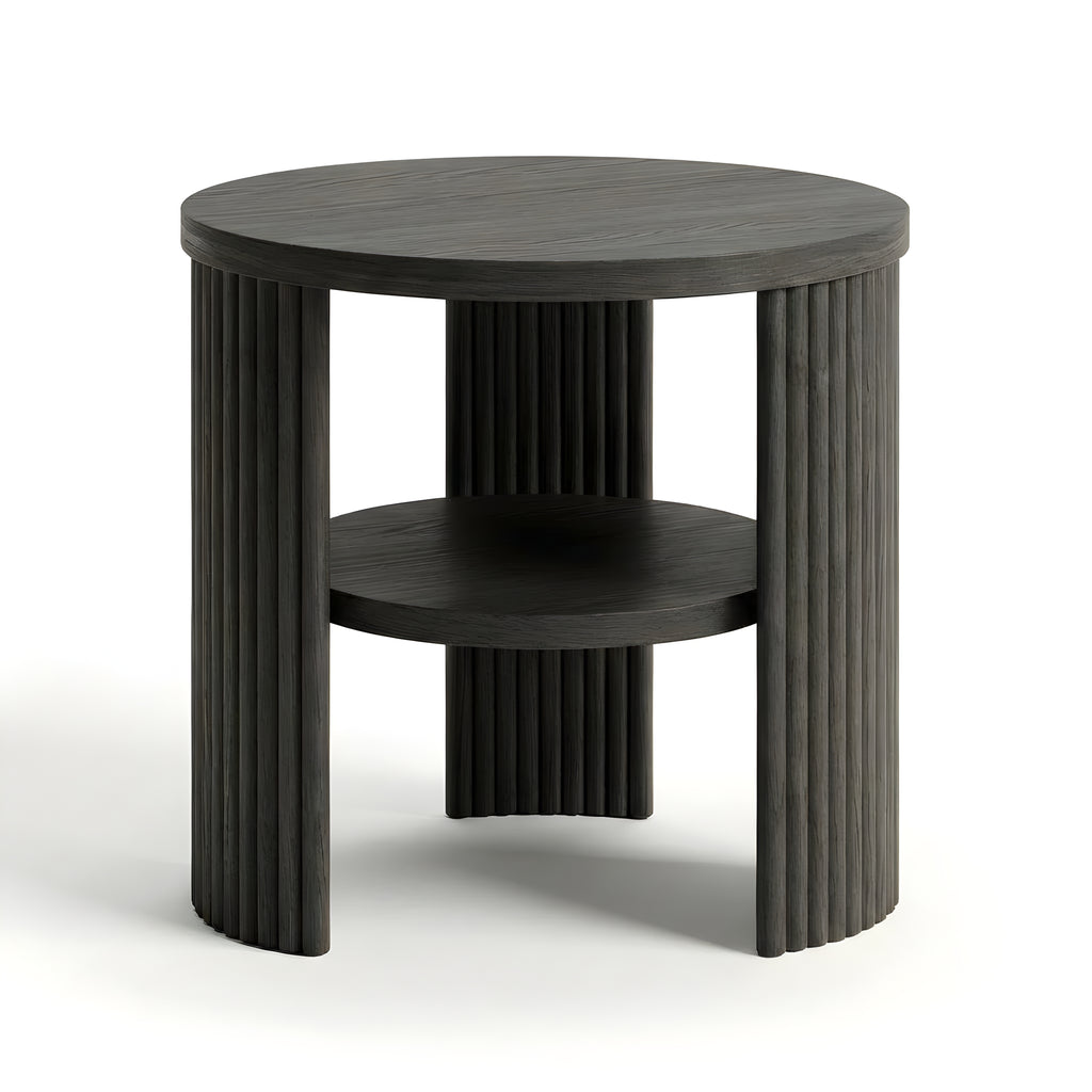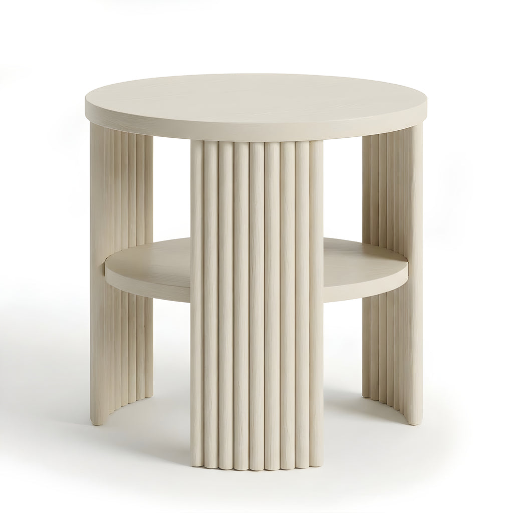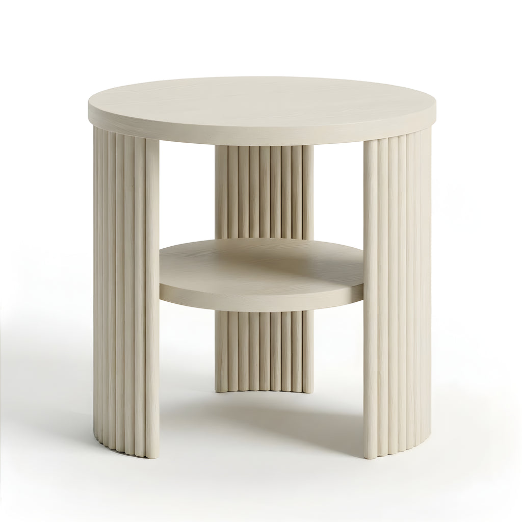 The Piper Triple Side Table is defined by balance, texture, and proportion. Its circular top is supported by three fluted semi-cylindrical legs, creating a sculptural rhythm from every angle. A recessed lower shelf adds function without visual weight, making this piece a refined companion for the sofa, bedside, or reading corner. Compact yet expressive, it’s a versatile layer in any modern setting.