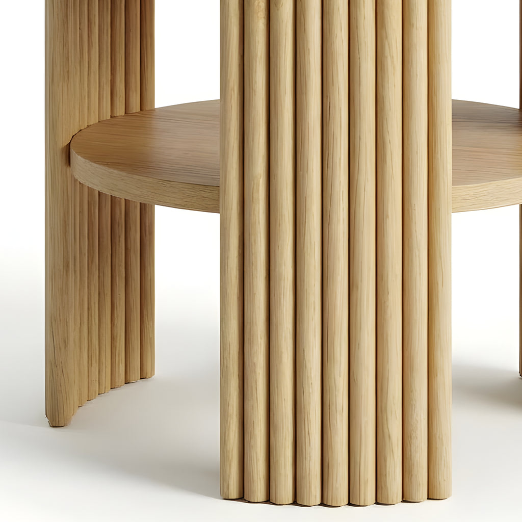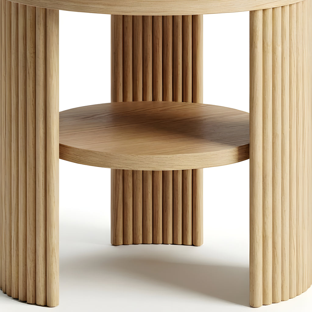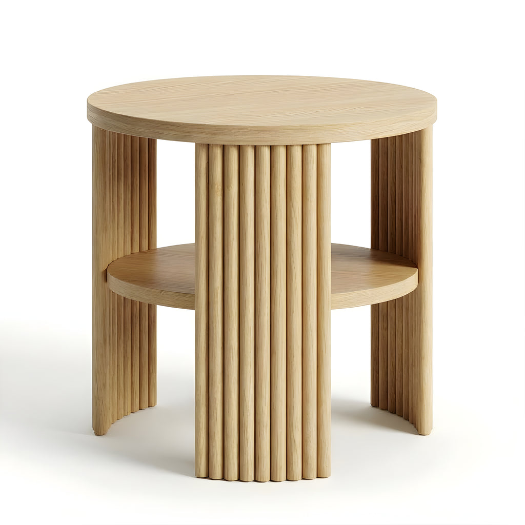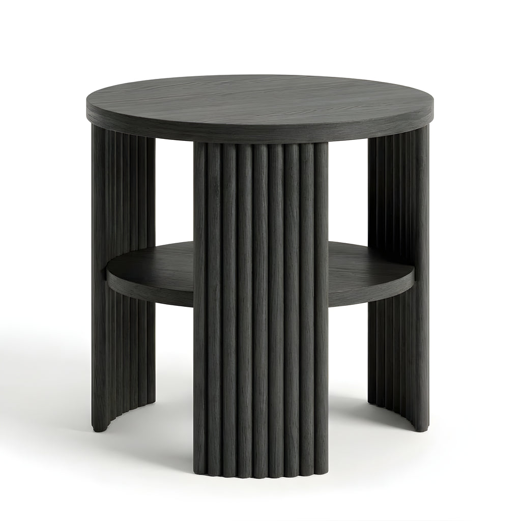 The Piper Triple Side Table is defined by balance, texture, and proportion. Its circular top is supported by three fluted semi-cylindrical legs, creating a sculptural rhythm from every angle. A recessed lower shelf adds function without visual weight, making this piece a refined companion for the sofa, bedside, or reading corner. Compact yet expressive, it’s a versatile layer in any modern setting.