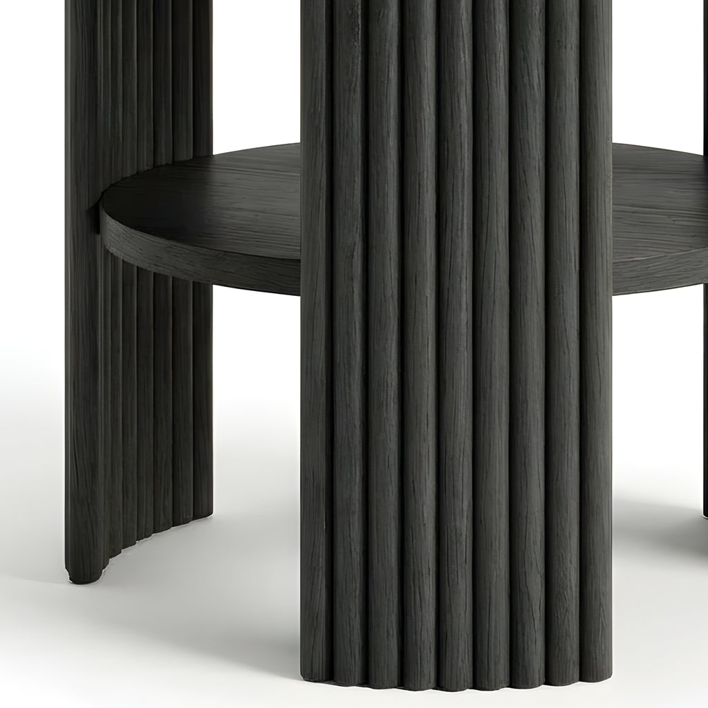In Black Ash, the Piper Triple Side Table offers bold geometry and refined structure. The deep, matte finish accentuates its fluted legs and balanced silhouette, while the inset shelf adds subtle function. Perfect for modern interiors seeking a striking, sculptural accent with presence.