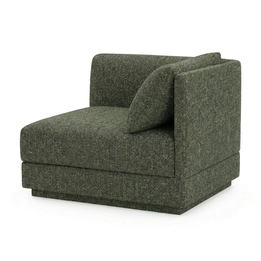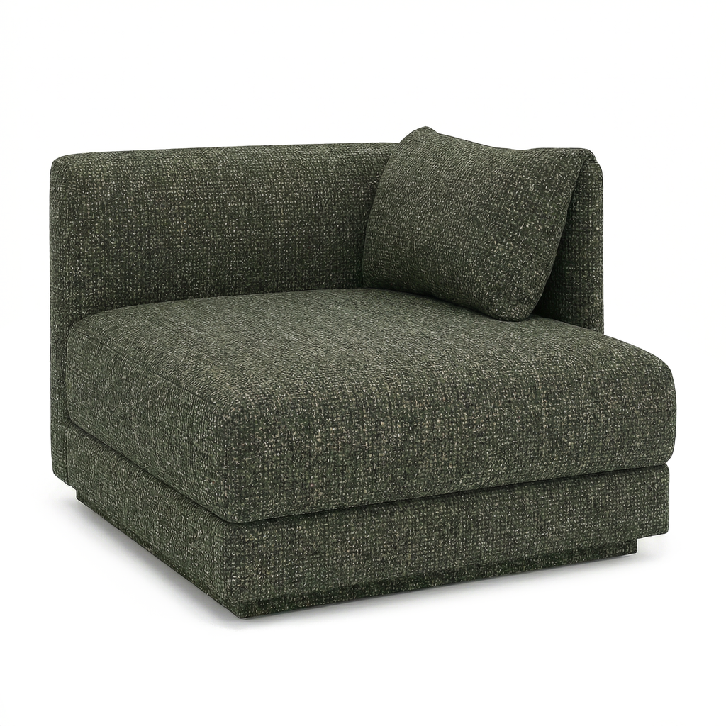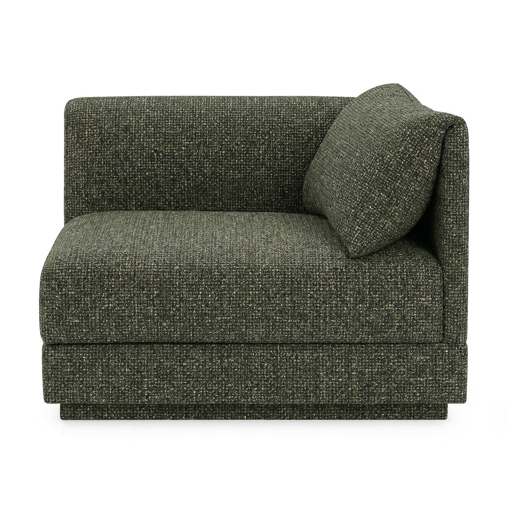 The Ala Corner – Right in Myrtle brings depth and richness to a modular arrangement through its earthy green tone and structured silhouette. The generous seat and softly defined arm create a grounded corner that feels both comfortable and composed.