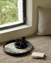 A subdued colour palette meets captivating motifs inspired by nature and travel. This Black Organic glass valet tray experiments with the balance between rich patterns offset with muted tones, revealing the beauty behind the deceivingly ordinary subjects from which inspiration is drawn. In doing so, this collection captures the essence of timelessness.